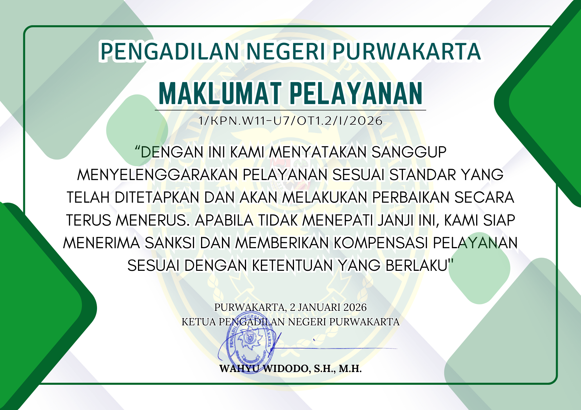 Zona Integritas Pengadilan Negeri Purwakarta Menuju Wilayah Bebas dari Korupsi (WBK) dan Wilayah Birokrasi Bersih dan Melayani (WBBM)
