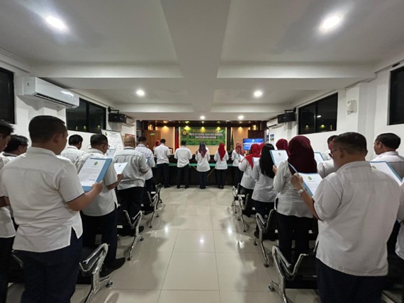 Kegiatan ini merupakan penyampaian pernyataan komitmen dan kesiapan pribadi setiap pejabat negara dan aparatur sipil negara yang diberi amanah sesuai jabatan masing-masing untuk selalu mematuhi dan menjalankan setiap point yang tercantum dalam pakta integritas. Yaitu, menjaga citra dan kredibilitas lembaga tempat bertugas dengan pelaksanaan kerja yang jujur, transparan dan akuntabel sesuai kode etik dan pedoman perilaku sesuai jabatan masing-masing., serta menjauhkan diri dari sifat tercela, membantu dalam pemberantasan korupsi, kolusi dan nepotisme, tidak meminta dan atau menerima gratifikasi, tidak terlibat dalam pertentangan kepentingan serta patuh terhadap peraturan perundang-undangan dalam melaksanakan tugas dan tanggung jawab.(fHd)
